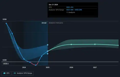 In the past year, Pfizer’s share price performance has aligned with the US Pharmaceuticals industry’s 10.7% decrease, indicating broader industry pressures. Despite the near-term boost, there remains uncertainty regarding the long-term revenue impact, especially with products like Vyndaqel and Paxlovid facing headwinds. The earnings forecasts similarly reflect cautious optimism, with analysts predicting growth but with slower annual profit growth of 7.2% compared to the broader US market’s 14.7%.
