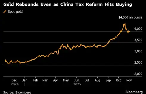 (Bloomberg) — Gold held around $4,000 an ounce after a weak start on Monday, after China ended a long-standing tax rebate for some retailers in a change that could weigh on demand in one of the world’s largest precious-metals markets.