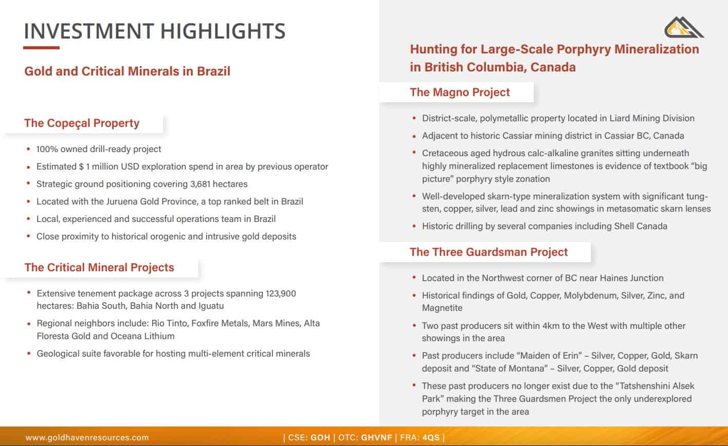 GoldHaven’s flagship Copeçal Gold Project sits in Brazil’s Juruena Gold Province – a belt that’s been producing gold since the 1980s and continues to attract major mining companies today.