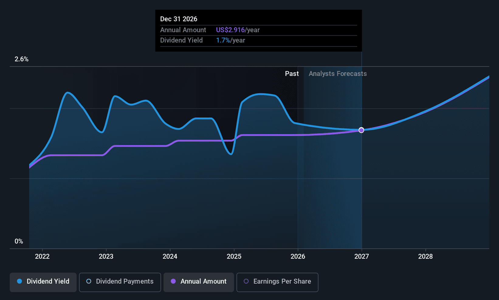 Over the next year, EPS is forecast to grow rapidly. Assuming the dividend continues along recent trends, we could see the payout ratio reach 100%, which is on the unsustainable side.