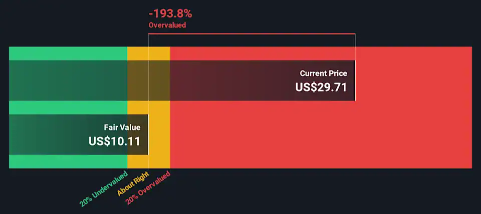 While analysts see upside to around $38.11, our DCF model paints a very different picture, suggesting ZEEKR is overvalued, with fair value closer to $13.48. Is the market underestimating execution risk, or is the cash flow model too harsh on this early stage EV story?